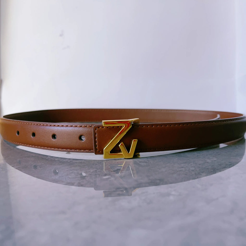 1 × Cinto Feminino de Couro com Fivela Dourada