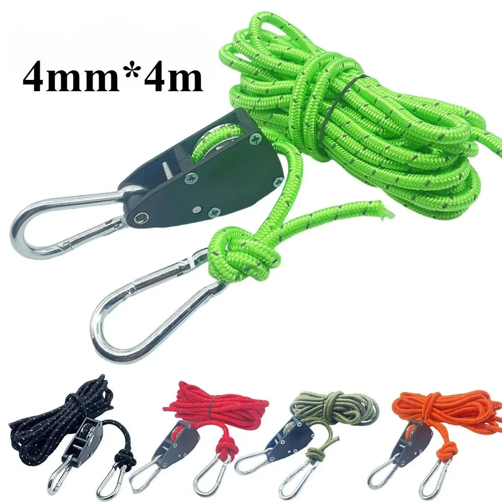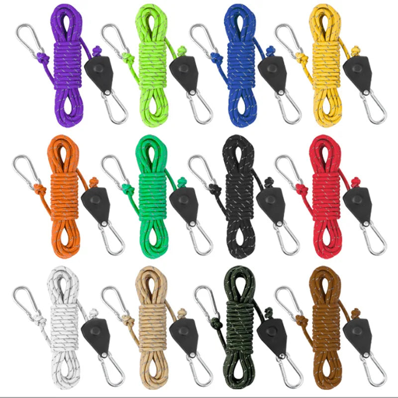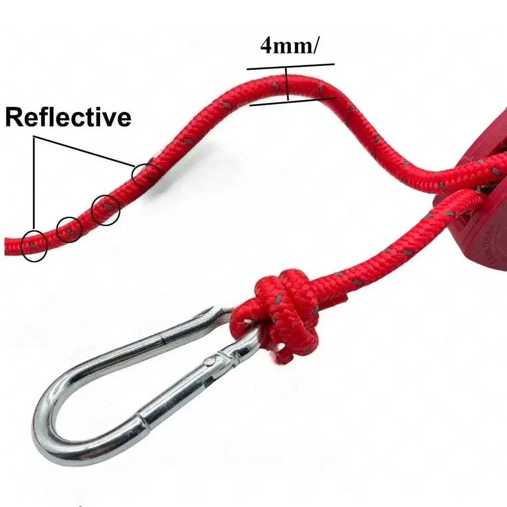 1.Ao montar uma barraca para acampar ao ar livre, use uma corda de aperto para prender rapidamente uma barraca nos pinos do solo.